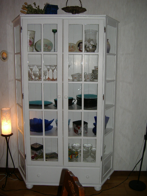 ......och det här vitrinskåpet var också i furu, det tog en evighet att måla vitt....